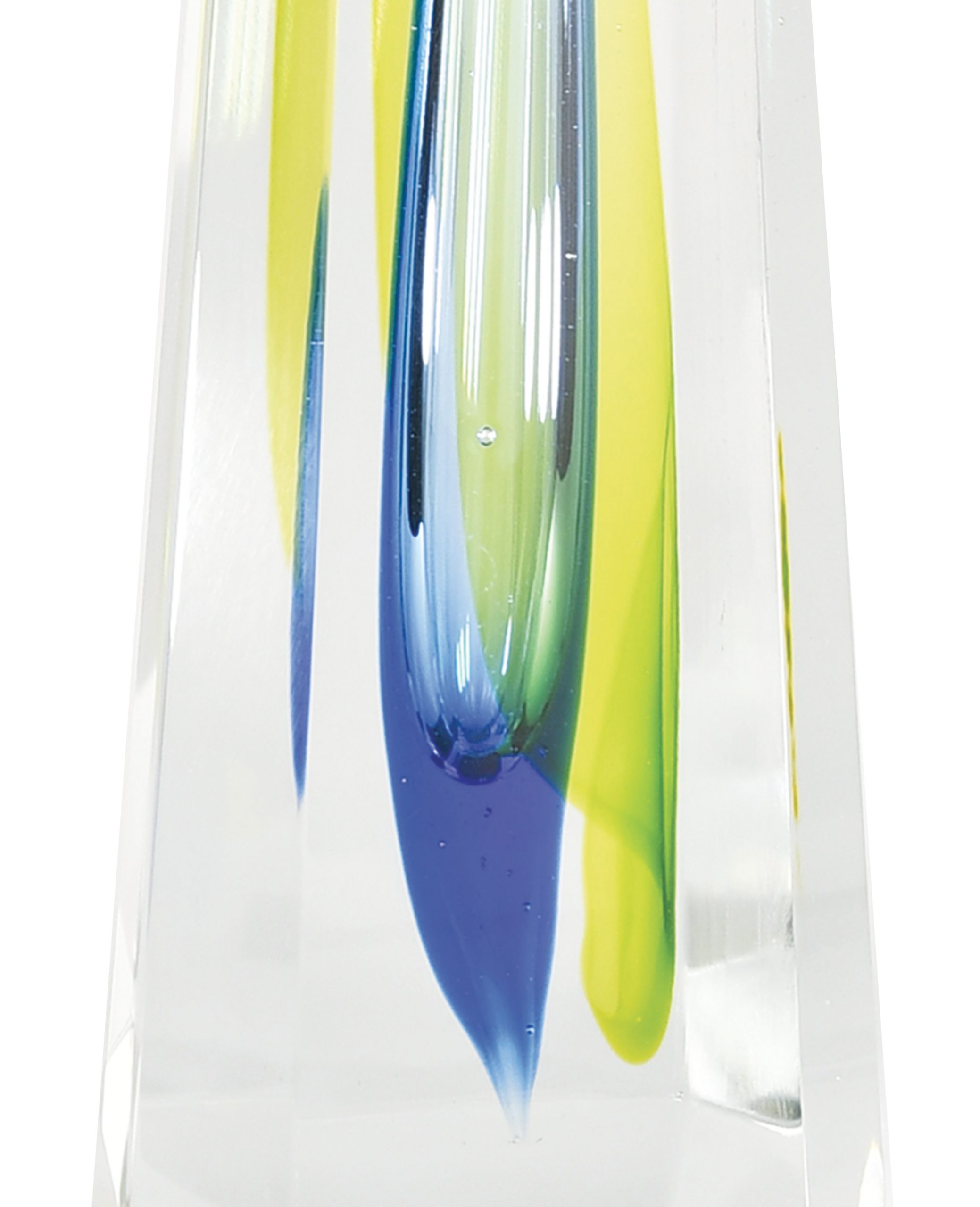 THE STRANGE BEAUTY OF FLOWERS - Verre encausto ocean, jaune et cristal transparent - 28 x 12 cm