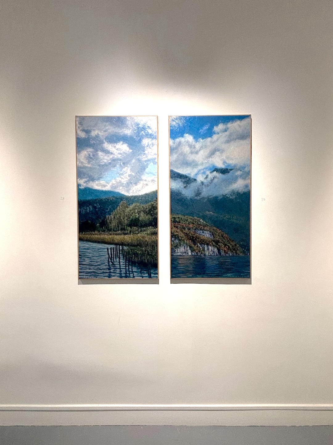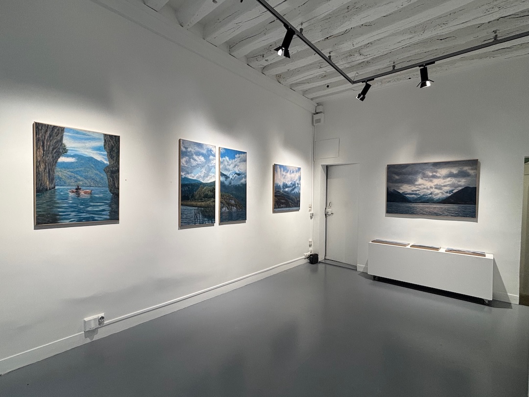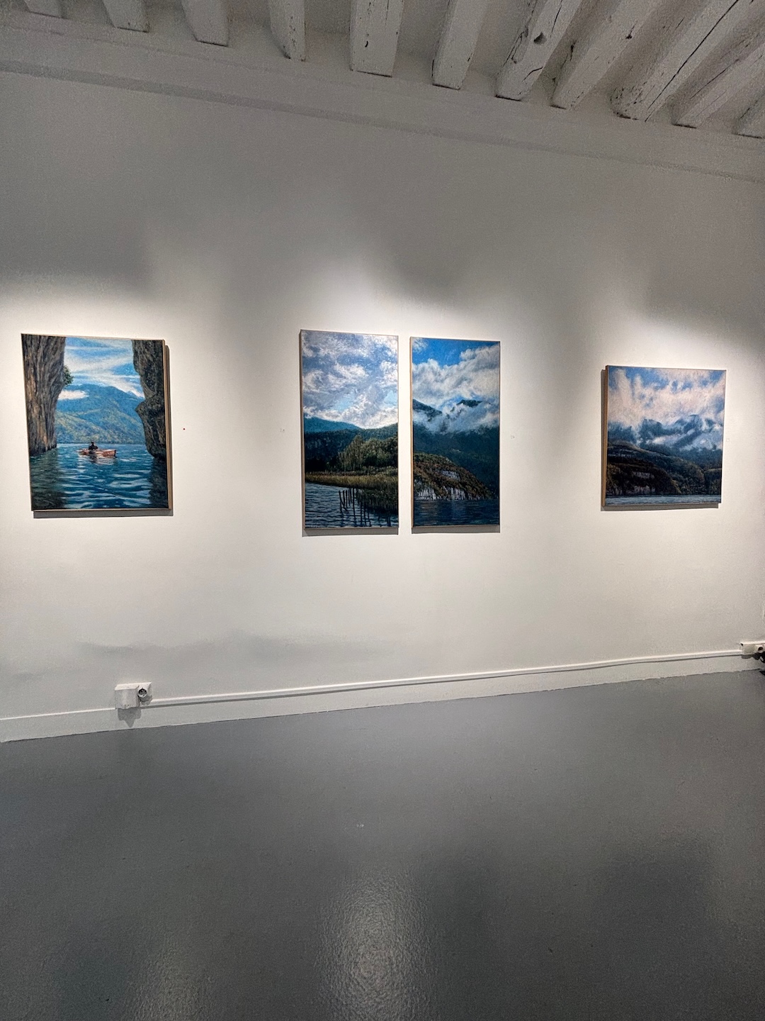 Il aime se fondre dans la nature, s’effacer dans le paysage, suspendre le temps. Jean Daniel Bouvard fait son œuvre en silence, tout en modestie et sensualité. Modelant la lumière, retenant les nuages, il nous donne à entendre le clapotis de l’eau, sentir le léger souffle du vent sur la forêt, celui des gens qui aiment contempler ces lieux, s’y réjouir. Ses toiles sont des respirations, elles apaisent en même temps qu’elles nous aspirent au-delà du cadre. Nous voilà immédiatement ailleurs, au loin sur le lac, par-delà un col, peut-être seul mais jamais triste... car c’est là le secret de Bouvard, il capture la beauté pour la joie et l’élan vital qu’elle réveille. Il ouvre les espaces, élargit nos horizons, nous relie aux forces du monde. Spectateurs immergés, nous nous sentons portés par les énergies du vivant. La montagne et l’eau, éléments fondamentaux du paysage classique chinois, le shanshui, s’entrelacent ici dans un échange intime entre matière, émotion et esprit ; entre l’ombre, la lumière et le doux passage du temps.