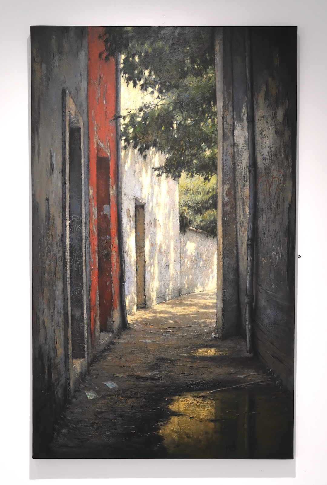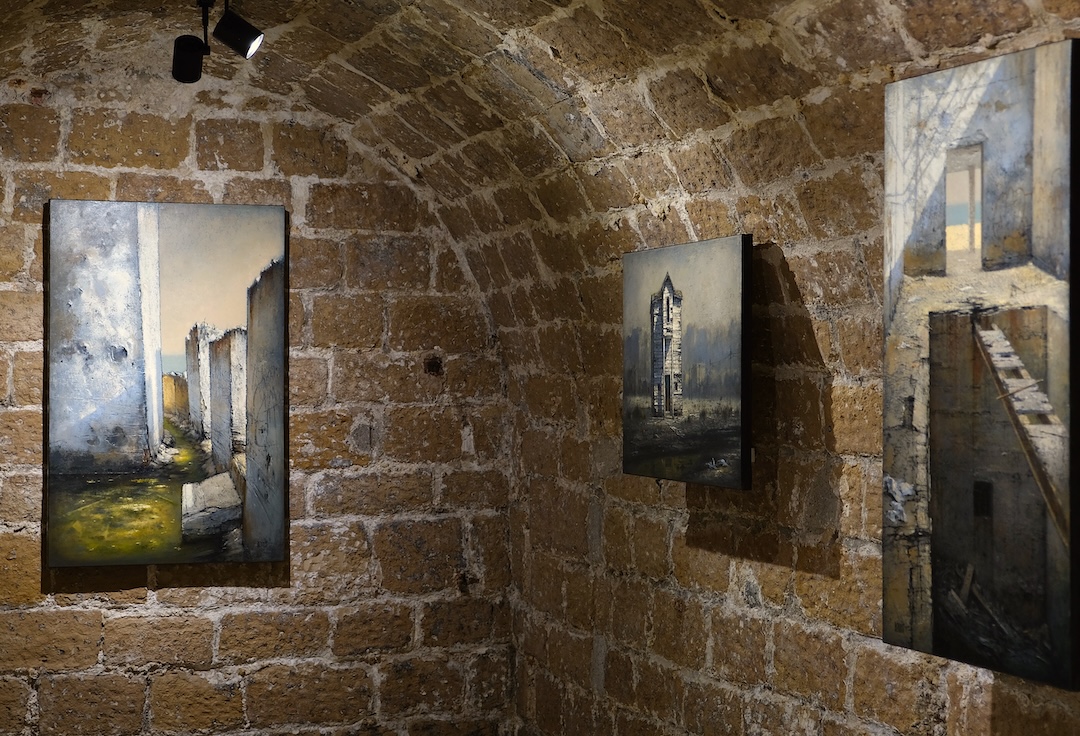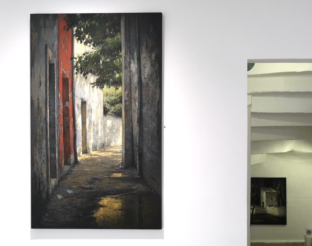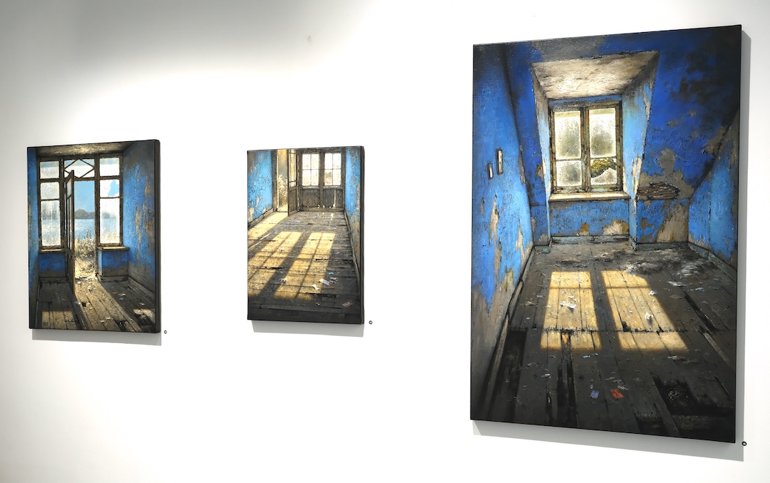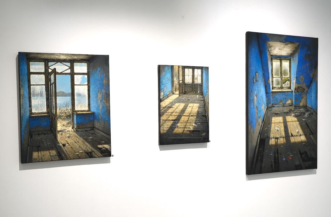 Dans ces œuvres, Christian Benoist explore ce point fragile où la lumière transforme l’espace. Ses peintures ne décrivent pas simplement des lieux abandonnés. Elles en saisissent la vibration, à un moment précis où le temps semble suspendu, dans une expérience intime du regard (1). Couloirs, pièces vides, façades ouvertes. Ces architectures sont marquées par l’usure, traversées par des traces, des inscriptions, des effacements. Rien n’y est figé. Tout semble en transformation. Le regard y circule, s’y attarde, s’y perd parfois.